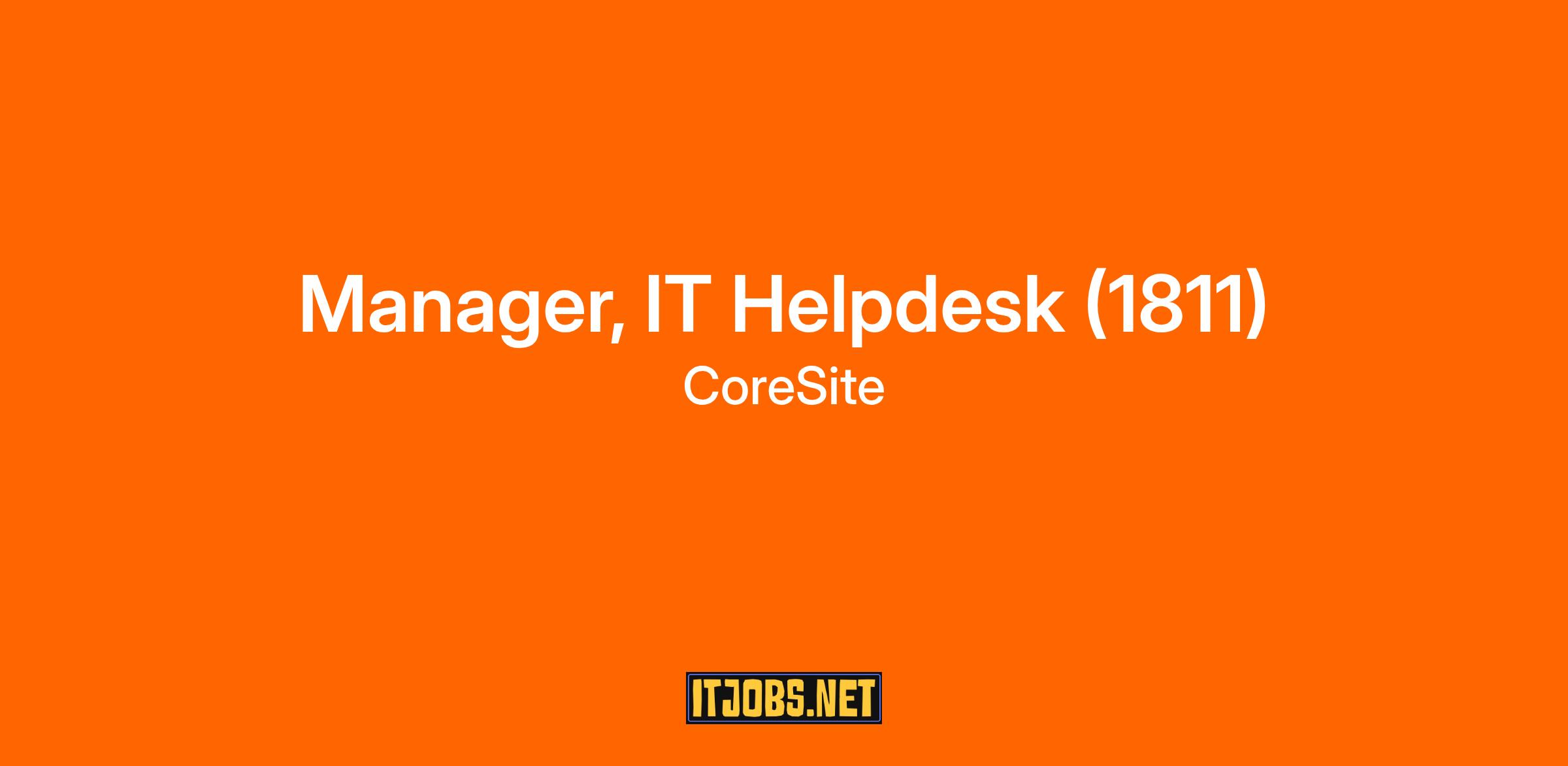 As a member of the company’s Operations Information Technology (“IT”) team, the Manager, IT Helpdesk leads and coordinates the Tier 1 helpdesk function that supports CoreSite’s end-user community. The Manager ensures high-quality customer service delivery through effective ticket management, queue monitoring, and proactive communications.