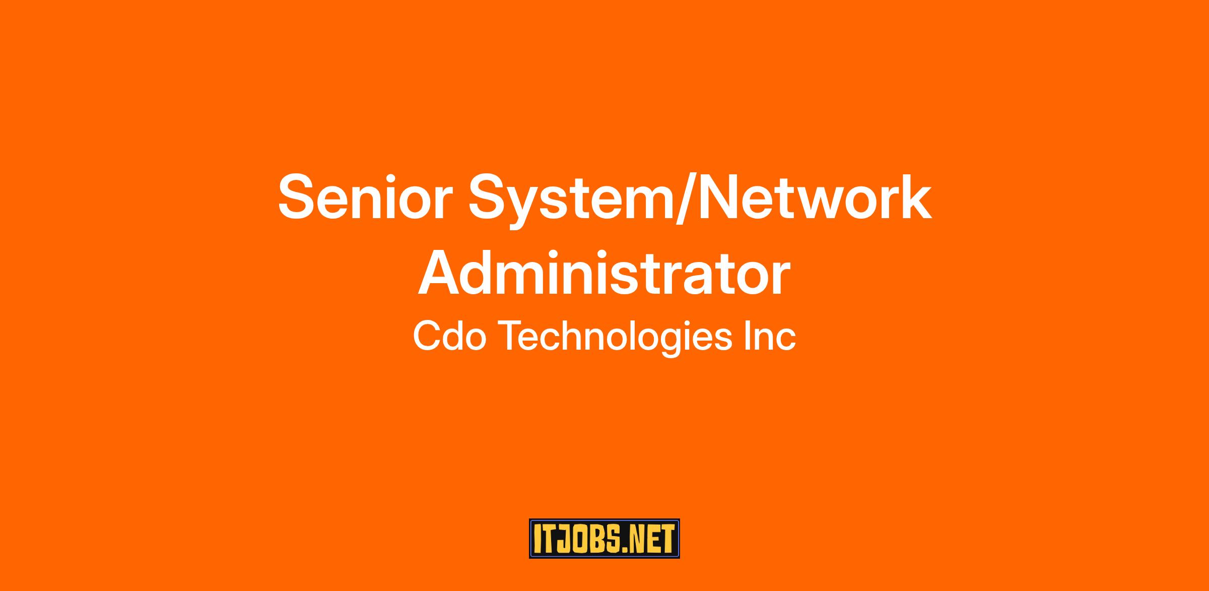 CDO Technologies is looking for a skilled Senior System/Network Administrator to join our team, leading internal IT operations and supporting Managed Services for our commercial sector clients. The Senior System/Network Administrator is responsible for directing all internal Information Technology (IT) related activities of the organization and for oversight, deployment, and support of Managed Services for the commercial sector. This includes managing and maintaining corporate systems and network for both internal and external customers, managing all desktop, laptop and other related hardware and software support activities in a corporate environment, and ensuring continuity of computer and telephony services throughout the organization through planning, technical leadership, and project coordination. Most work is completed during regular business hours, but must have availability to be on call and work outside of normal duty hours as customers may require emergency assistance.