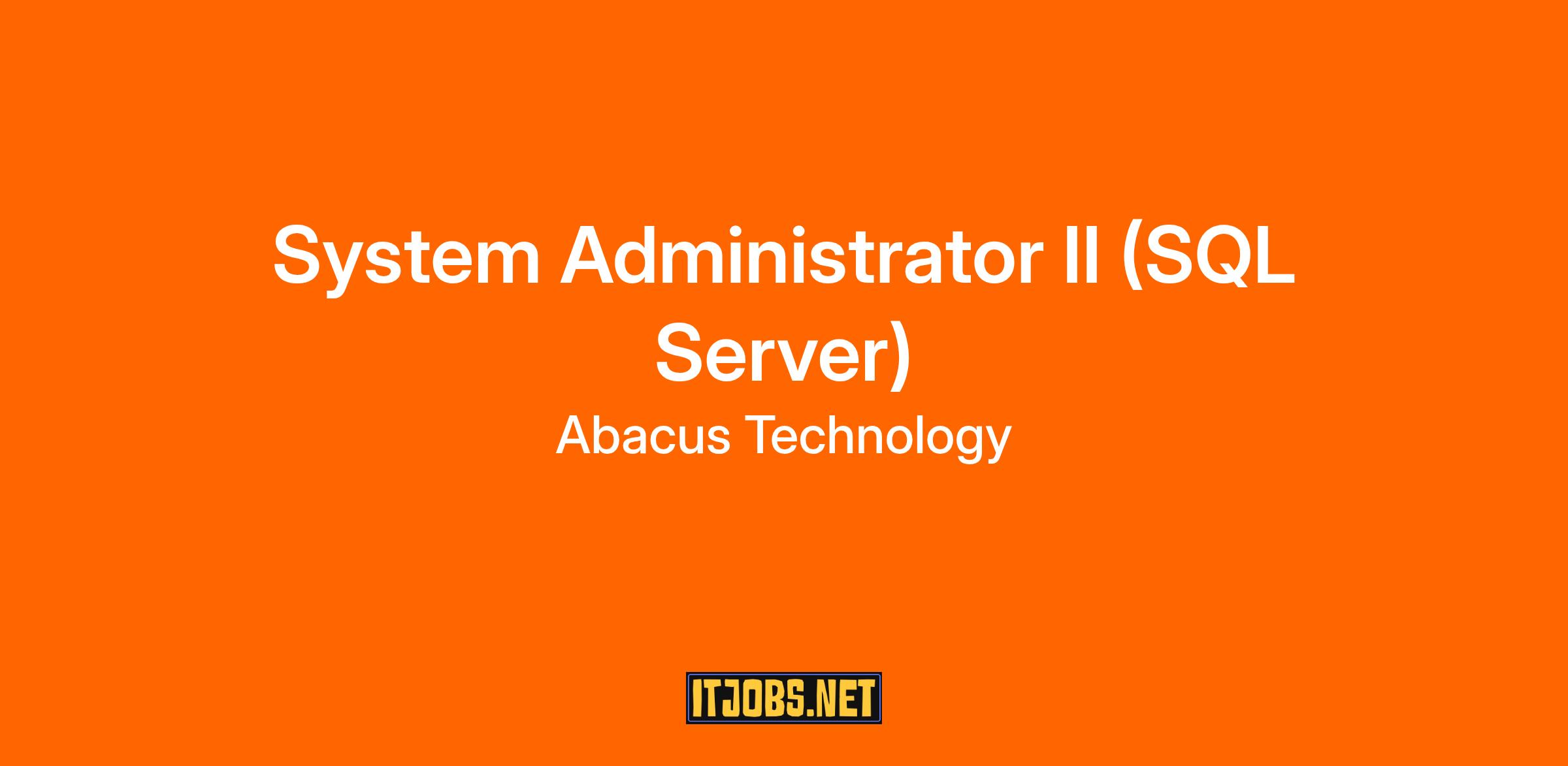 Abacus Technology is seeking a Systems Administrator to provide SQL Server support for the Air Force Intranet Control (AFINC) III Support program at Maxwell AFB-Gunter Annex. This is a full-time position.