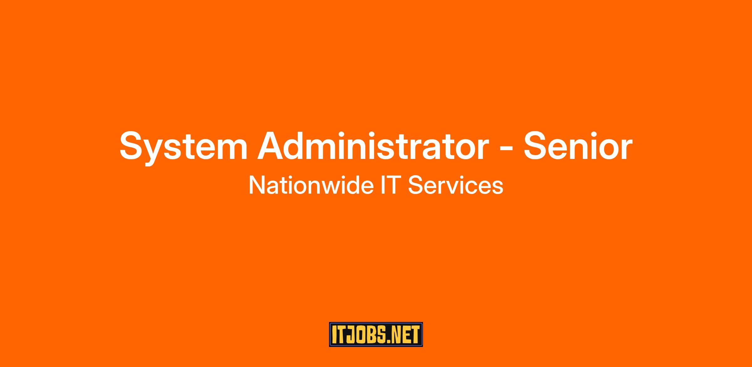 Overview: Nationwide IT Services, NIS, is seeking a Senior System Administrator to ensure the stable operation of the in-house computer software systems and network connections. This includes planning, developing, installing, configuring, maintaining, supporting, and optimizing all network software and communication links. Key Responsibilities: